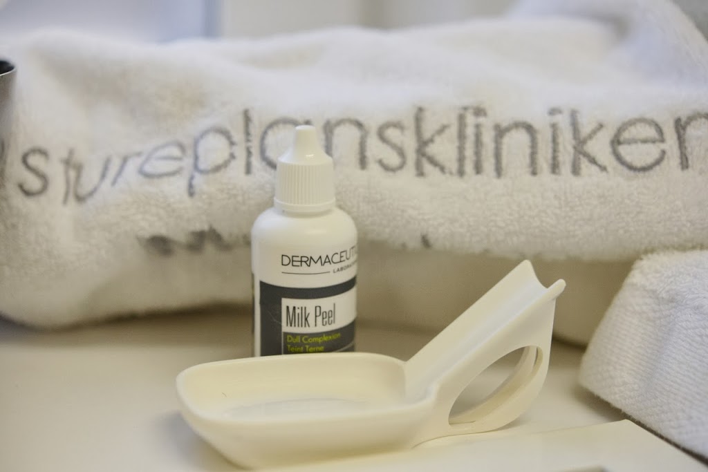 I dag har jag gjort min tredje omgång på min kemiska peeling på Stureplanskliniken och jag märker verkligen skillnad. Mjölk peelingen är en produkt från Dermaceutic, trots att det är en kemisk peeling så tycker jag att den är väldigt mild på huden, första gången jag gjorde den låg den inte på ansiktet speciellt länge och idag hade jag den i fyra minuter, så då kan ni förstå vilken effekt den har.