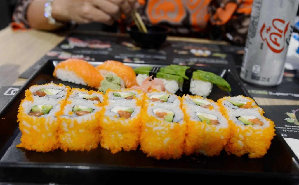 Det är så varmt och man går som i dvala hela tiden så att man till och med glömmer bort att äta, men till slut orkade vi inte gå längre och hittade detta sköna Sushi ställe som serverade galet god Sushi..