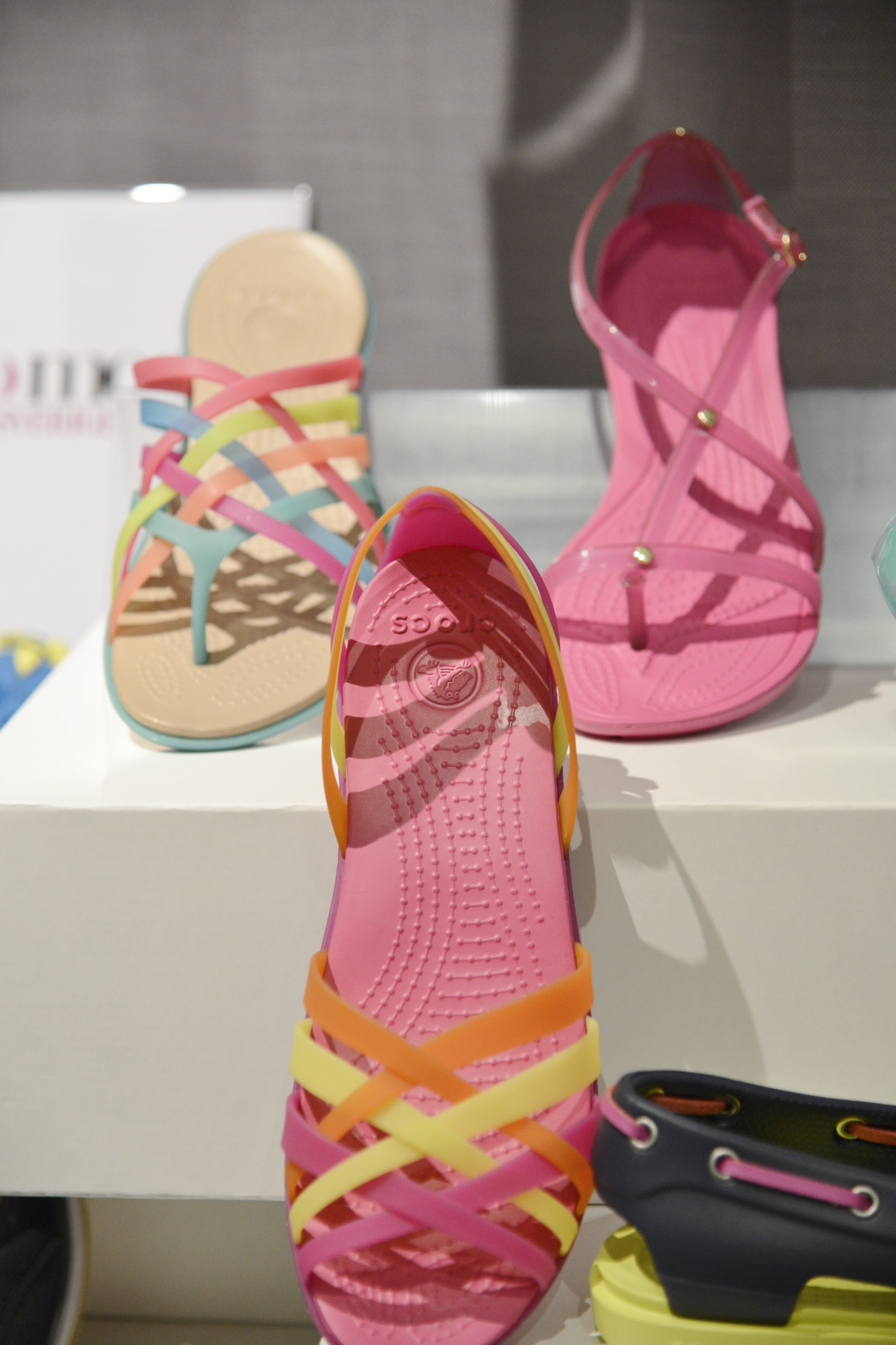 Dom här färgglada sandalerna från crocs använde Top Model tjejerna vid en av inspelningarna