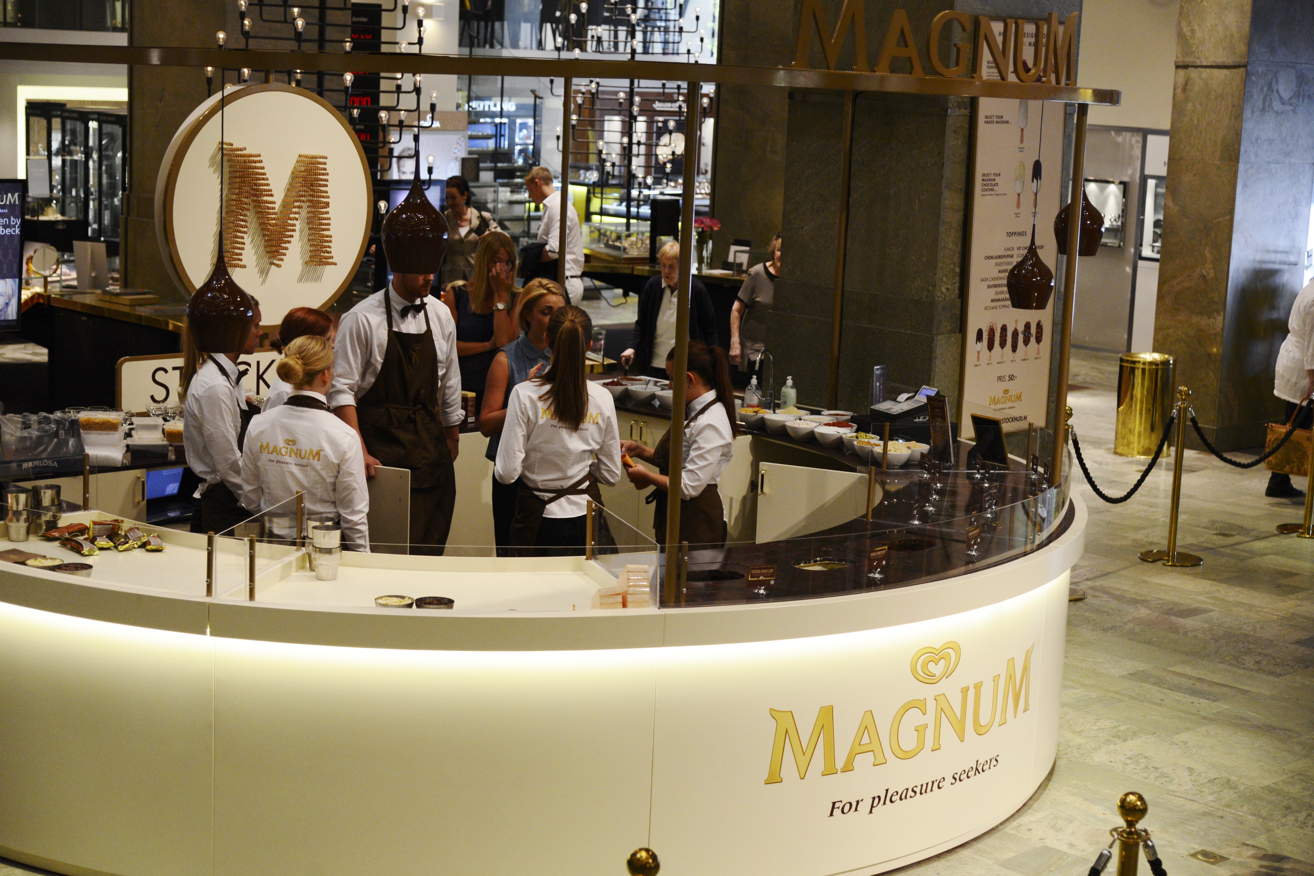 Den 19 maj öppnade Magnum sin första pop up store i Sverige på NK i Ljusgården. Där kan du designa din helt egna unika Magnum genom att välja bland spännande ingredienser som rosenblad, havssalt, saltlakrits, pistagenötter och mycket mer för att göra glassen till din alldeles egna njutning.