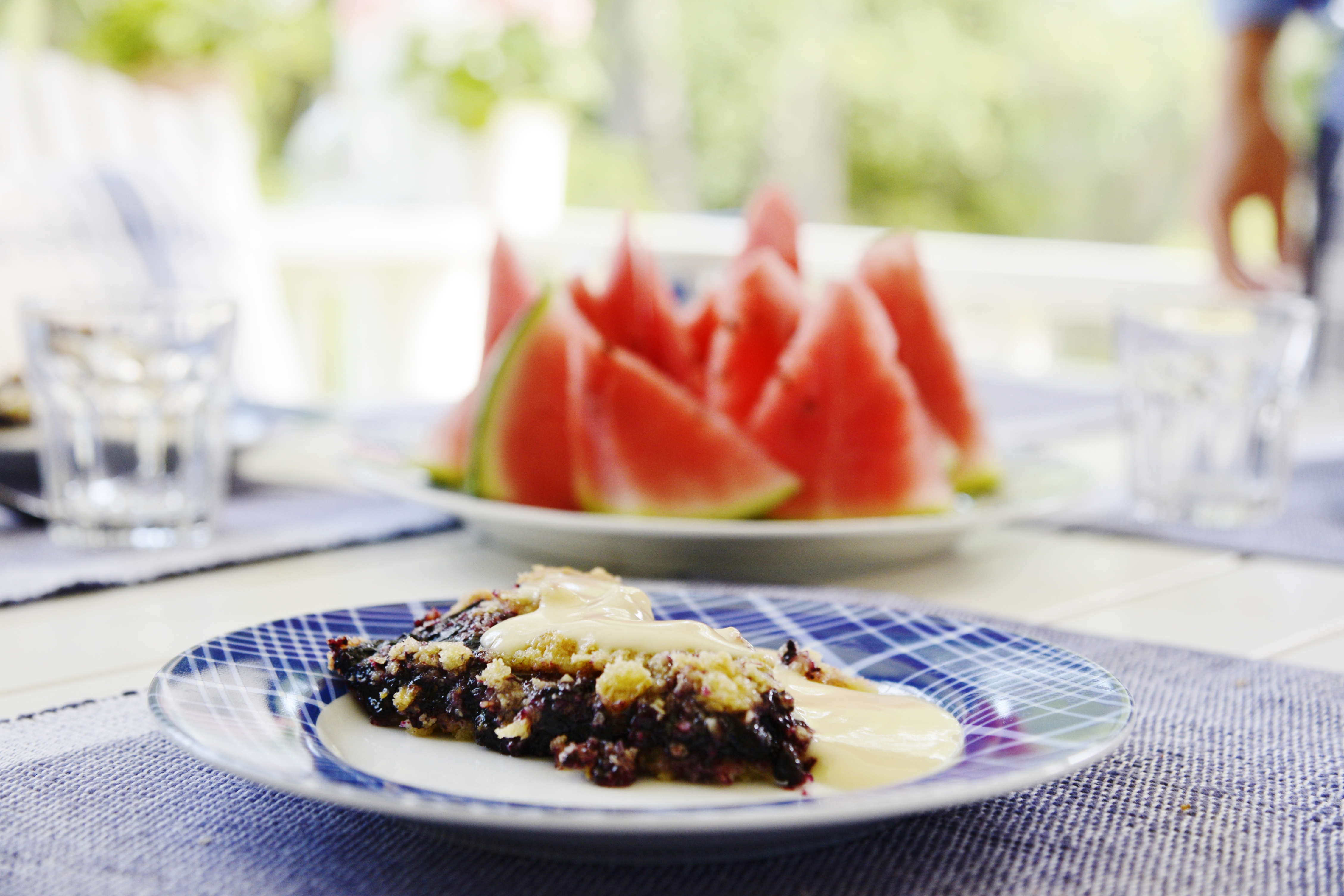 En underbart god blåbärspaj, nybakad och varm bjöds vi på