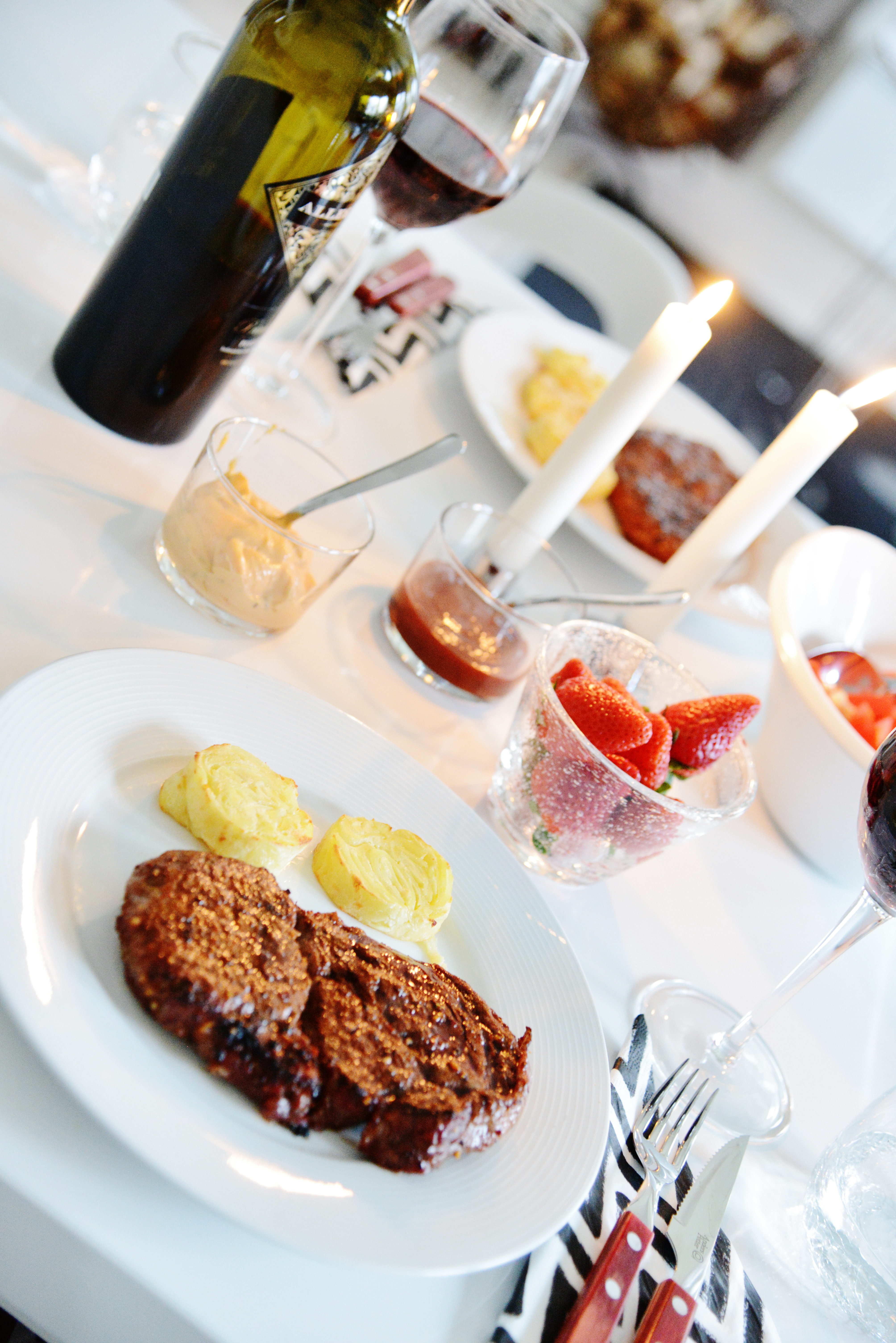 Middagstips! Underbara grilltider, jag får aldrig nog av att grilla och nu känns det som att alla middagar blir så mycket enklare när man kan grilla, här grillar vi det mesta, både kött, fisk, fågel, grönsaker och potatis. Jag är ganska kräsen när det gäller kött, men vi brukar köpa färsk kött från Charken och den här gången blev det Entrecote som var helt gudomlig, den bara smälte i munnen, till det en enkel sallad, lite beasås, kan aldrig föräta mig på den såsen tror jag, och sen lite ”fusk” potatis, den nya potatisgratängkorven som blir så fin att lägga upp…