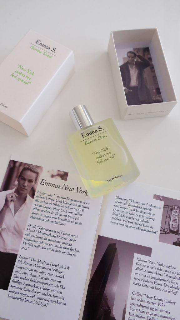Nu har jag fått min parfym från Emma.S – Barrow Street. Den parfymen som jag fastnade för när jag mötte Emma på Arlanda. Det är energin, kreativiteten och människorna i 90-talets Greenwich Village, New York, som har varit inspirationen bakom Emmas andra doft Barrow Street. Från den tiden då Emma jobbade som modell i New York. Det här är en unisex doft som är lite tyngre men som passar både till vardags och till fest, men jag föll för den direkt! En doft som frisk Rosépeppar som kryddats med Mandarin och Bergamott. Lummiga, gröna mellannoter och Mysk sveps in i varm och sofistikerad Vetiver. Hmmm… går nästan och luktar på mig själv här hemma. Så är det kryddningar som faller er i smaken ska ni absolut prova den här doften. Den vann dessutom Norwegian Cosmetic Awards 2017.