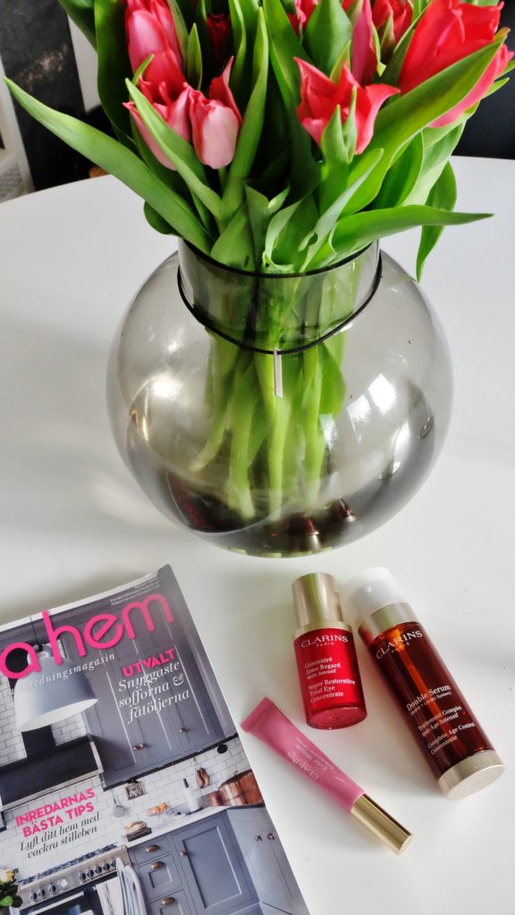 Sen har vi läpparna som kan bli ganska torra och frasiga under vinter halvåret, där är det viktigt att smörja in läpparna under natten så dom hinner återhämta sig. Något som alltid finns i min handväska och som jag lägger på läpparna flera gånger om dagen är Clarins lippgloss ”instant light” som finns i olika nyanser och som jämnar ut och ger ett fylligt och glansigt intryck på läpparna, dessutom vårdande. Nästen ett måste i alla kvinnors handväska om ni frågar mig, jag vet inte hur många jag har 🙂