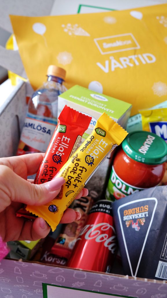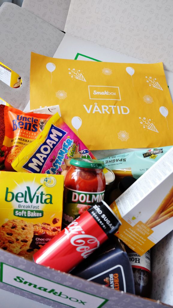Boxen levereras varannan månad och innehåller ca 15 nya smaker och produkter till ett värde av 350 – 450 kr. Men själv betalar du bara 199 kr.