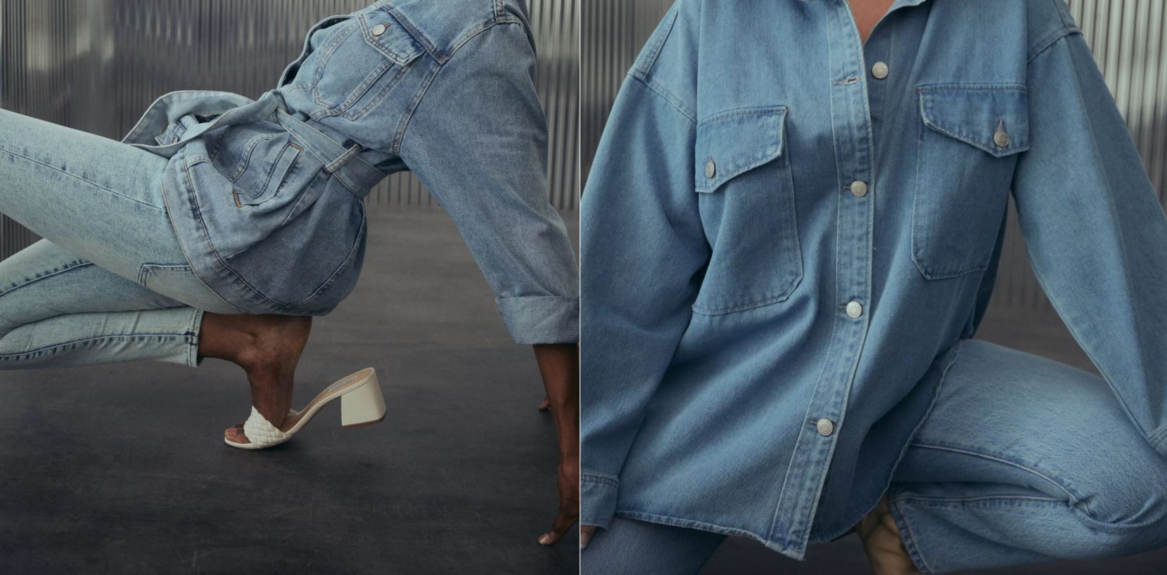 Jeans (till vänster) Jeansskjorta/jacka (tillhöger)