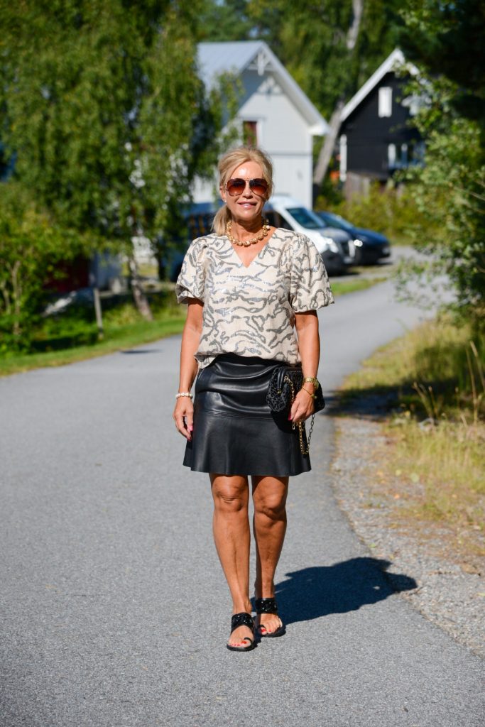 Topp finns hos Valdy Living (ingen webshop men skickar) – Skinnkjol Massimo Dutti (gammal) liknande här – Sandaler Unisa