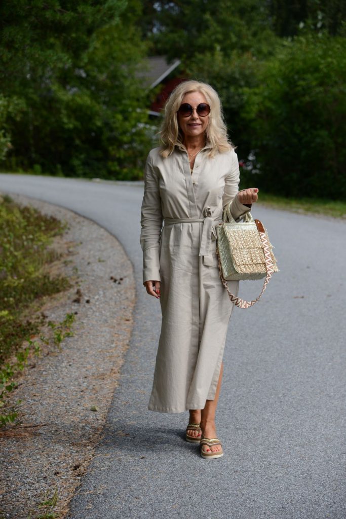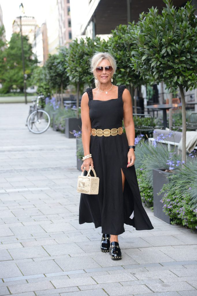 Klänning och bälte ZARA – Väska från Santorini – Träskor & Other stories
