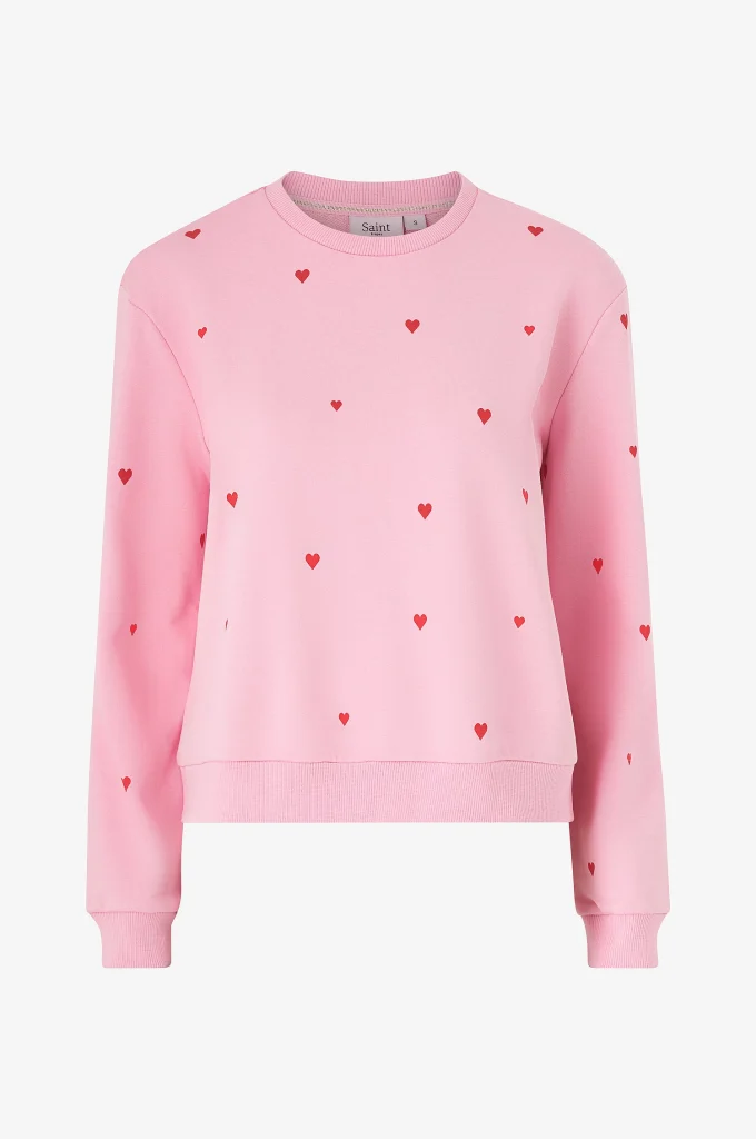 Rosa sweater med hjärtan – finns även i offwhite