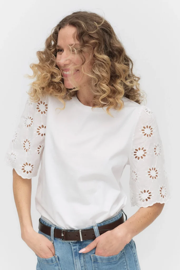 Vit topp med mönstrade ärmar – finns även i svart